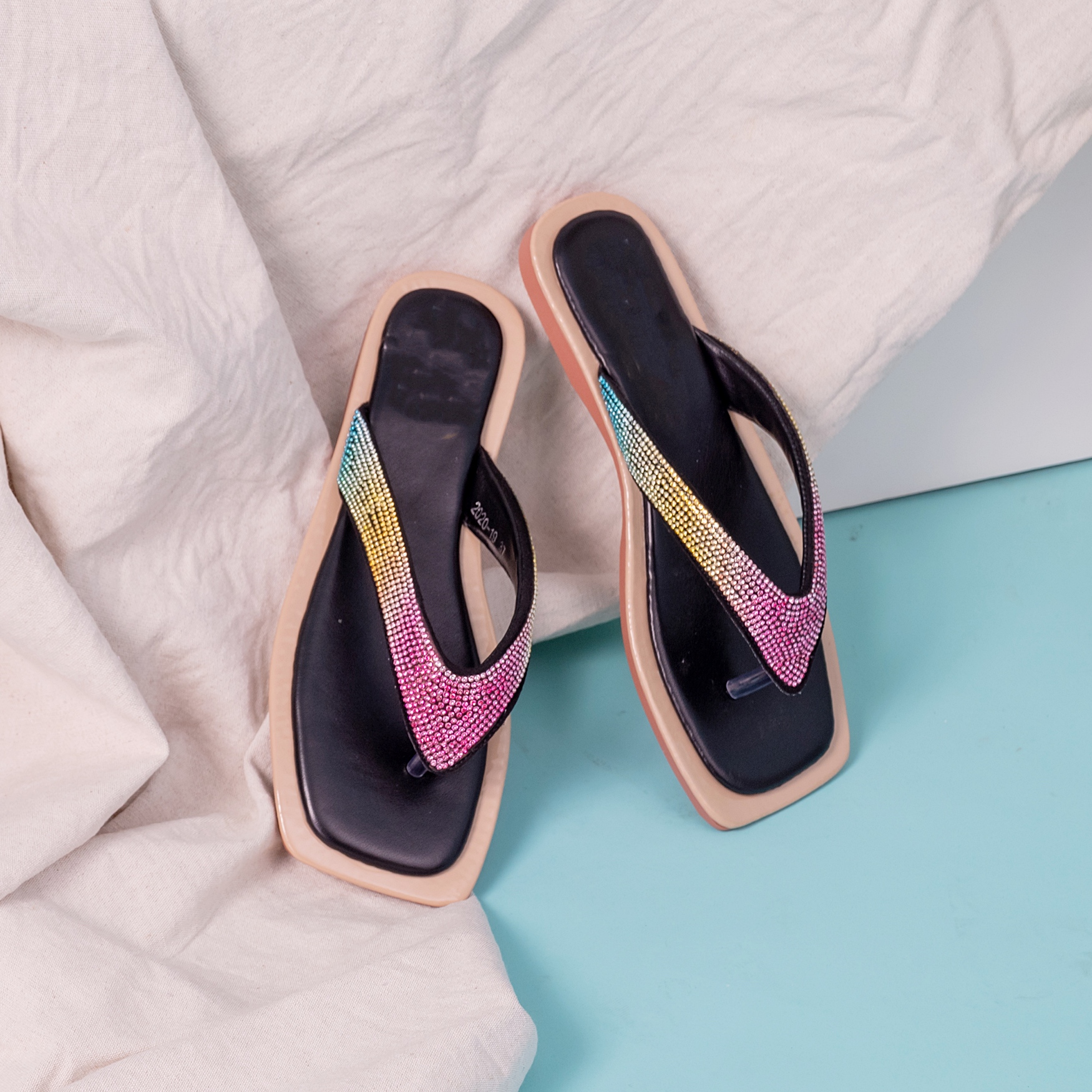【Annalee】彩虹嘉年華真皮夾腳涼鞋-狂歡黑013645